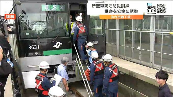 仙台市地下鉄で大地震を想定した訓練が行われ、今年秋から運転を始める予定の新型車両を使い参加者が災害時の対応を確認しました。富沢車両基地で行われた訓練には、交通局や消防などからおよそ110人が参加しまし…