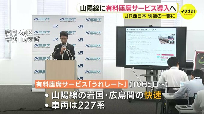 有料座席サービスの「うれしート」を導入するのは、山陽線の岩国~広島間の快速で、車両は227系です。