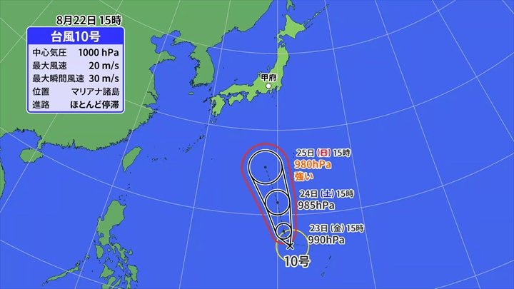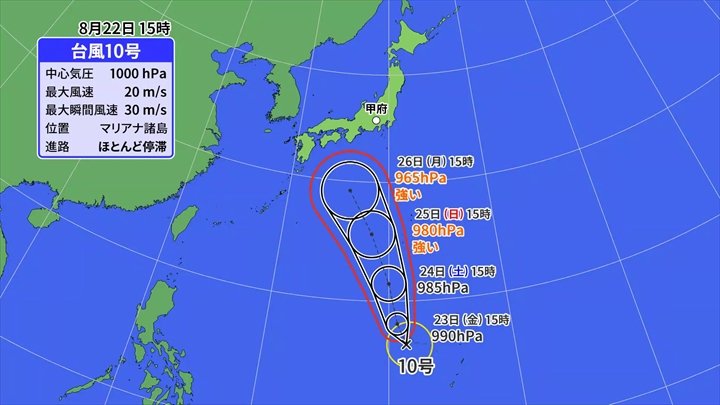 ただ、この東寄りの進路をとりますと、山梨は大きな影響が出る恐れありますので
