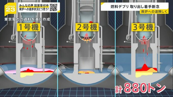 燃料デブリは、1号機、2号機、3号機の合わせて880トンあるとみられていますが、その取り出しは、廃炉の中でも最も難しい作業と言われています。