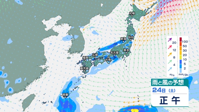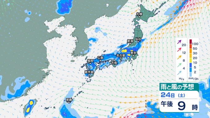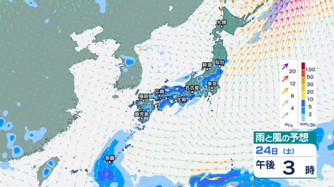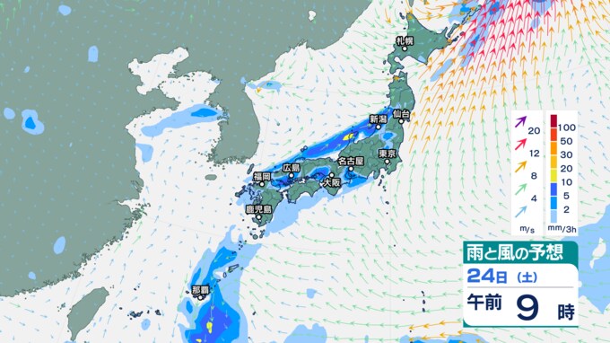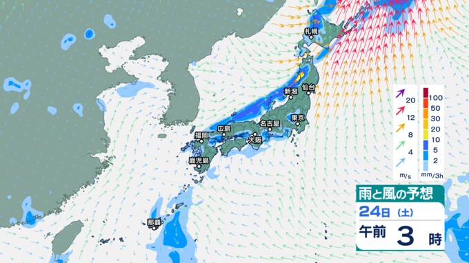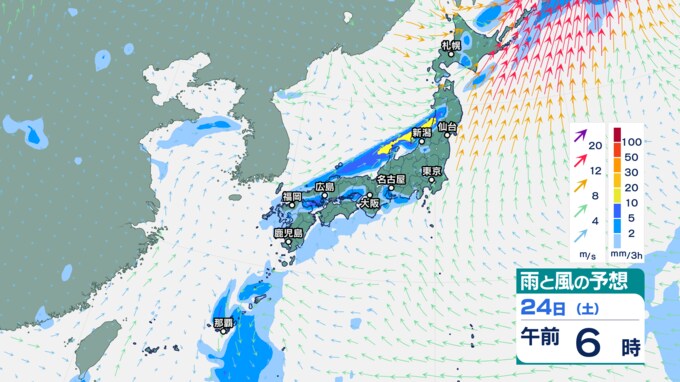 25日午前0時以降『雨と風の予想図』3時間ごと