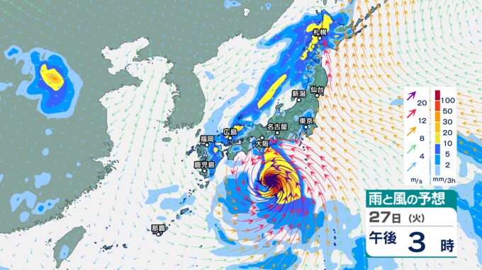 28日には新潟県を直撃か? 台風10号(サンサン)は風速25m/s以上の暴風域を伴い 発達しながら北上中