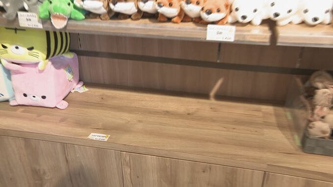 3か所のショップで販売していて、ぬいぐるみ2種類とフィギュア、マグネットを販売しているこの店では…