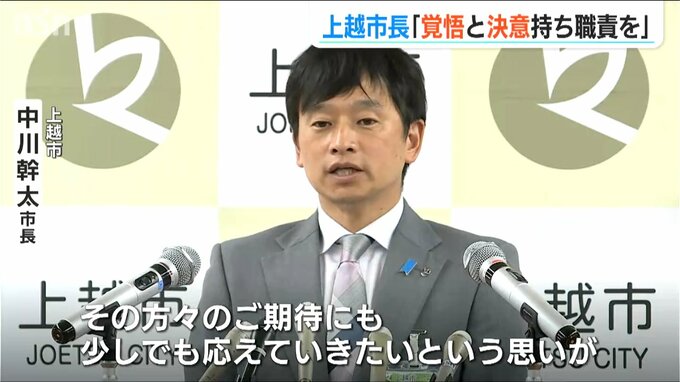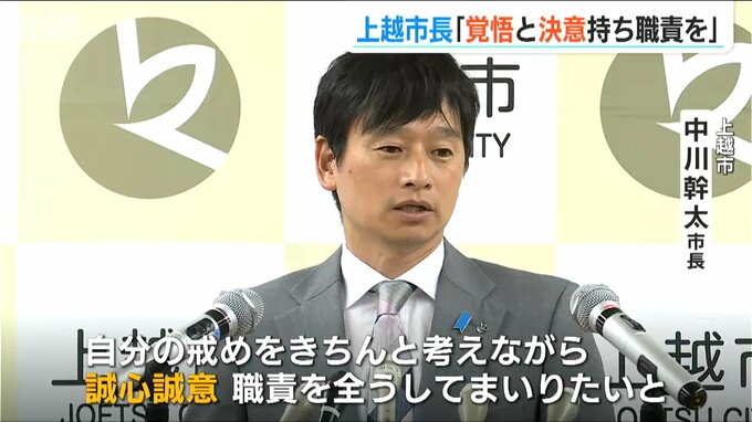 【上越市 中川幹太 市長】「自分の戒めをきちんと考えながら誠心誠意、職責を全うしてまいりたいと。誠心誠意、皆さんにご説明をしていきたいと。今掲げている公約を誠心誠意実行していきたい」