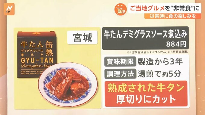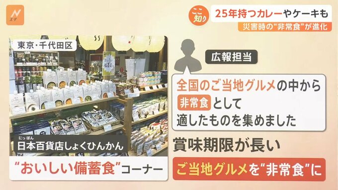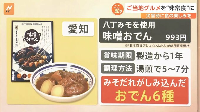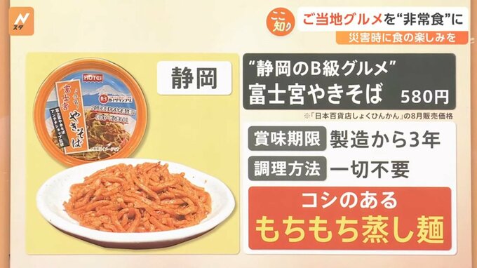 広報担当は「全国のご当地グルメの中から非常食として適したものを集めました」としています。非常食用に作られたものではありませんが、賞味期限が長いご当地グルメを非常食に…と提案しています。