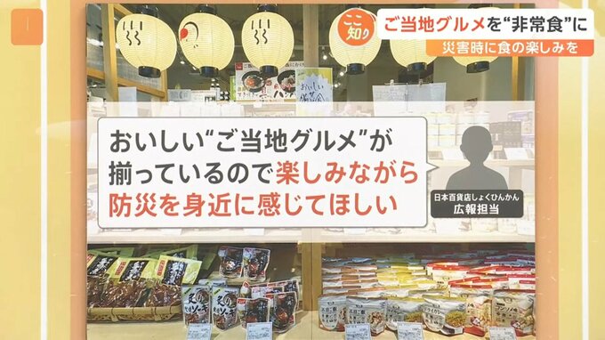 日本百貨店しょくひんかん広報担当は「おいしい“ご当地グルメ”が揃っているので楽しみながら防災を身近に感じてほしい」としています。