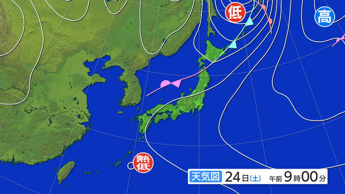 24日(土)午前9時の天気図
