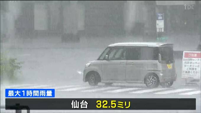 暖かく湿った空気の影響で、24日の県内は大気の状態が非常に不安定になっています。仙台市内では正午過ぎから雷を伴い叩きつけるような雨が降り、1時間に32.5ミリの激しい雨を観測しました。