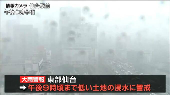 現在、東部仙台に大雨警報が出されていて、午後9時頃まで低い土地の浸水に警戒が必要です。