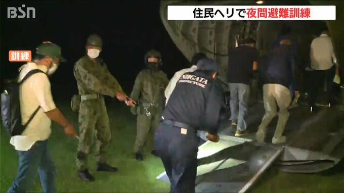 また、道路が寸断され、一部の住民は夜間に空路で避難することになったという想定も加えられました。訓練には刈羽村の住民12人や県職員らが参加し、懐中電灯を手に真っ暗な道を歩き、ヘリに乗り込みました。