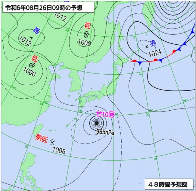 【台風情報】「台風10号 サンサン」27日(火)以降には最大瞬間風速「60メートル」非常に強い勢力で西日本から東日本にかけて接近、上陸するおそれ 列島縦断し影響が広範囲にわたる可能性、全国的に大荒れ アメリカ・ヨーロッパの予想は? 山陰放送 2024年8月24日(土) 22:28 国内 気象庁HPより 気象庁HPより