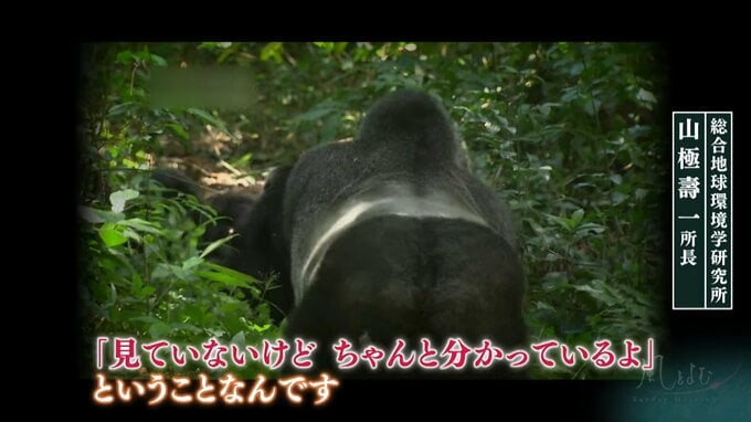「ゴリラは言葉を持っていないから、立ち居振る舞いが重要。成熟すると背中が真っ白な毛に変わる。リーダーは背中を見せて決して振り向かない。『見ていないけど、ちゃんと分かっているよ』ということなんですよね。背中は威厳を示すと同時に許容力も示している。