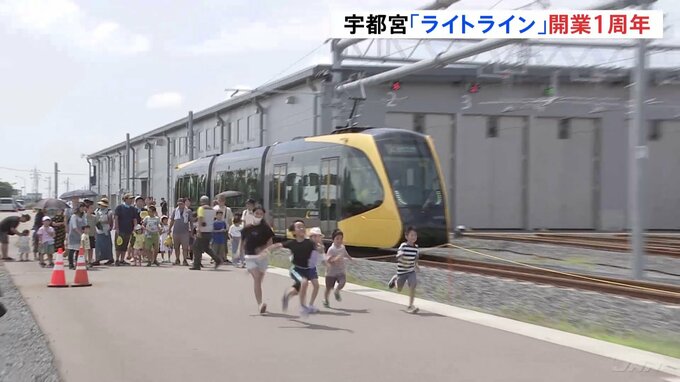 次世代型の路面電車「ライトライン」が、あす開業から1年を迎えるにあたって、栃木県宇都宮市でイベントが行われました。栃木県宇都宮市と芳賀町の間を走る次世代型の路面電車「ライトライン」は渋滞解消などを目…