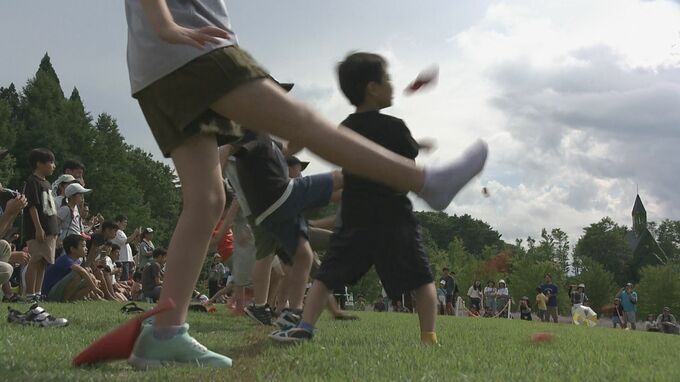 岐阜県郡上市の観光施設「牧歌の里」でスリッパを飛ばしてその距離を競う大会が開かれました25日に開かれたのは、4月から行われてきた予選大会を勝ち抜いてきた181人が参加する決勝大会で、競技は小学生の部と中学…