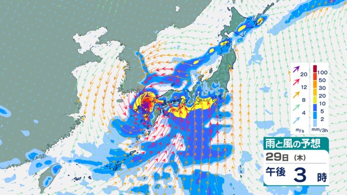 3. 【台風情報】台風10号は29日に「強い勢力」で九州“直撃”の可能性が… 上陸後も“ノロノロ”のスピードで西日本縦断の恐れ… 予想最大瞬間風速「60 m/s」も 今後の進路は?【最新進路予想・雨と風のシミュレーション】