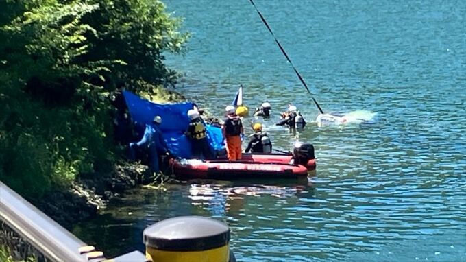 25日午後10時40分ごろ、富士河口湖町の精進湖で湖畔の駐車場から車1台が落ちたと釣りをしていた人から警察に通報がありました。