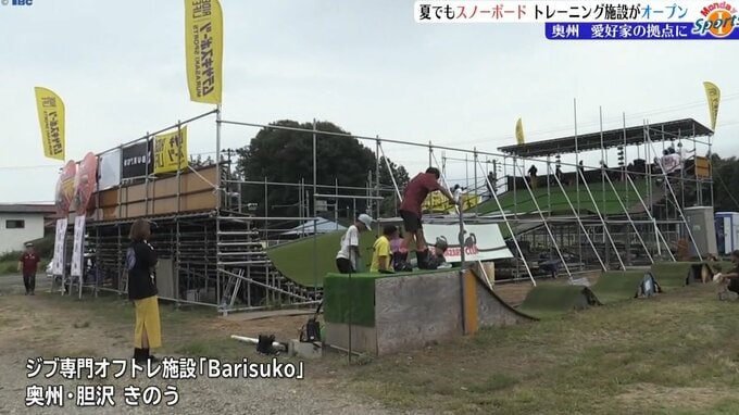 奥州市胆沢にオープンしたのは、スノーボードやスキーで人工物を利用して技を競うジブ専門のオフシーズントレーニング施設「Barisuko」です。