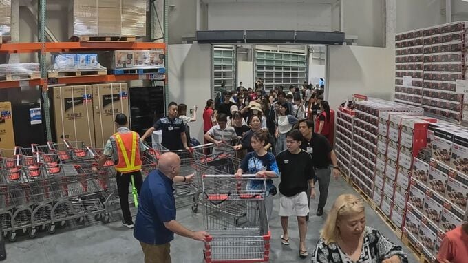 周辺道路は大渋滞となり、コストコに向かう道にはどこまでも続く長い車の列。そんな状況に、中には徒歩で買い物に来る地元の人もいました。