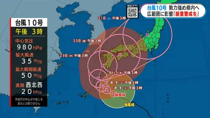 強い台風10号は、27日から29日木曜にかけて勢力を強めながら鹿児島県内に最も接近する見込みです。台風の速度が遅く、広い範囲で災害のおそれが高まるおそれがあり、厳重な警戒が必要です。26日午後5時ごろの種子…