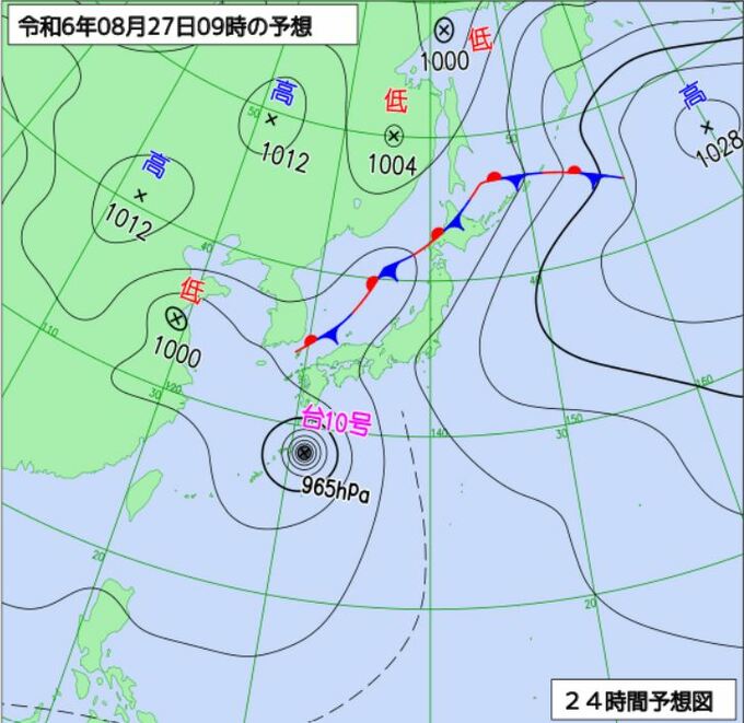 【台風情報】「台風10号」接近前から西日本から東日本の太平洋側で「大雨」 愛知・岐阜・三重・静岡では27日午前中は「線状降水帯」発生の可能性 最新進路予想は? 29日以降は西日本に接近するおそれ 山陰放送 2024年8月27日(火) 01:52 国内 気象庁HPより 気象庁HPより