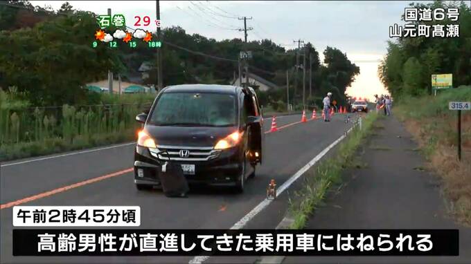 27日午前2時45分頃、山元町高瀬の国道6号線で、道路を歩いていた町内に住む70代の男性が、正面から直進してきた乗用車にはねられました。男性は全身を強く打ち、仙台市内の病院に運ばれましたが、その後、死亡しました。現場は信号機や横断歩道のない片側1車線の直線道路です。
