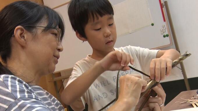 石垣市で子どもたちが「アダン」の葉を使った伝統的なおもちゃ作りに挑戦しました。