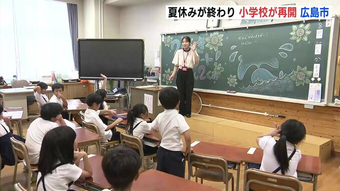2学期制をとっている広島市の多くの小学校で夏休みが終わり、27日から学校が再開しました。広島市の袋町小学校です。暑さ対策のため、児童たちは涼しい教室で校長先生の話を聞きました。袋町小学校 三吉和恵 校長…