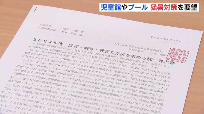 教員や保護者でつくる市民団体が、学校のプールや児童館などの猛暑対策を求める要望書を広島市に提出しました。