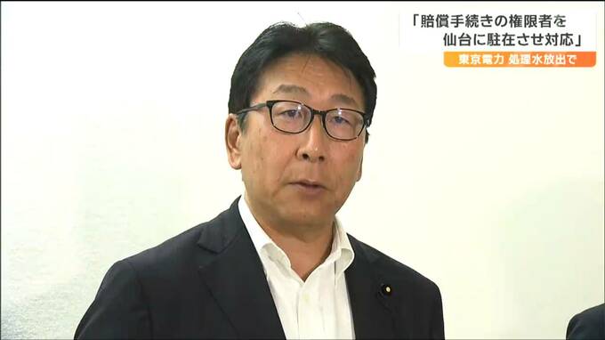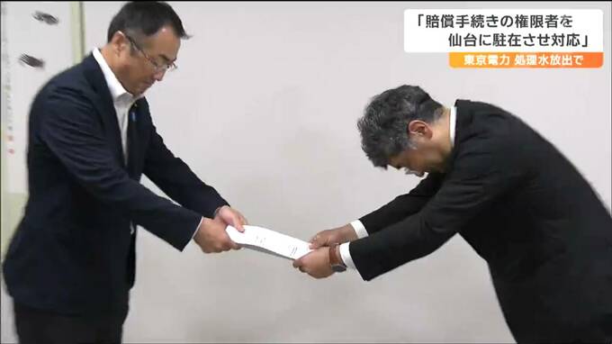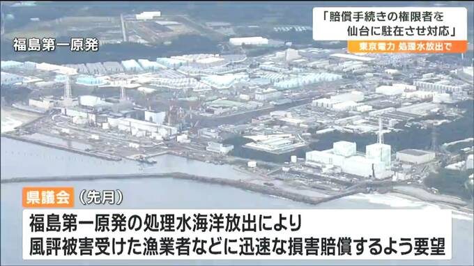 宮城県議会が東京電力に対し福島第一原発の処理水の海洋放出に伴う迅速な損害賠償を求めていることについて、東京電力は26日、支払い手続きの権限のある社員を仙台に駐在させ対応していると回答しました。
