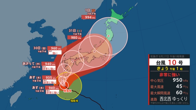 ・9月1日午前9時の予報によりますと…
