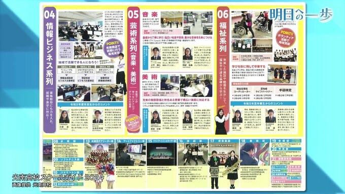 社会に貢献する人材の育成を目指し、専門性の高い様々な授業があるのが特徴で、生徒一人一人の個性を伸ばす教育を推進。