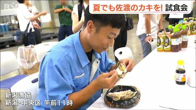 新潟市で27日、佐渡のカキの試食会が開かれました。