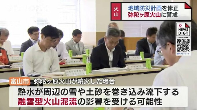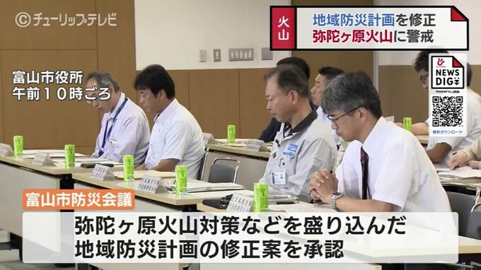 富山市の防災会議が27日開かれ、弥陀ヶ原火山が噴火した場合の対策などを盛り込んだ地域防災計画の修正案について承認しました。