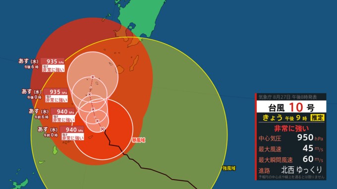 【台風情報・27日午後9時更新分】台風10号いまどこ?今後どうなる?気象予報士解説付き “超ゆっくり”スピードで北上中 今後“直撃”と日本列島縦断の恐れも…【進路予想図・最新の気象庁データ】 青森テレビ 2024年8月28日(水) 12:10 国内
