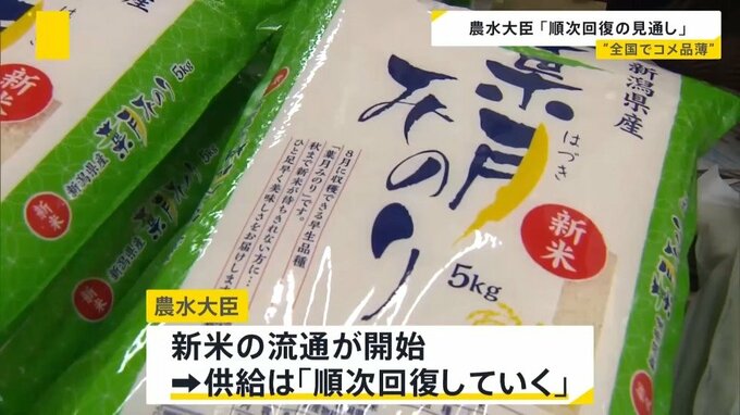 農水大臣は、早いところでは新米の流通が始まっているとして、供給は「今後、順次回復していく」との見通しを示しました。