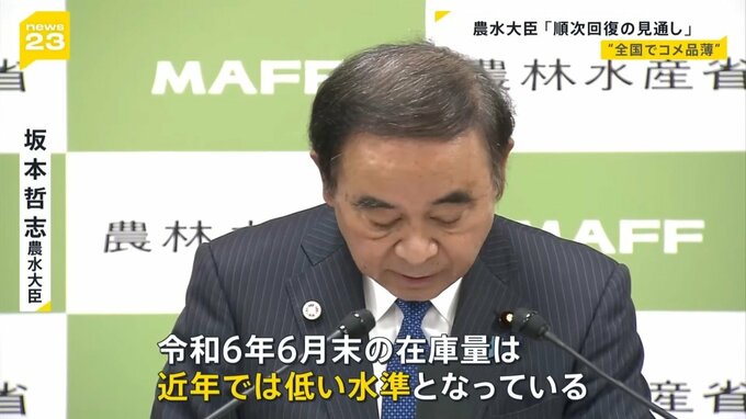 “令和のコメ騒動”といわれるほど一部で品薄となっている米。28日、坂本農水大臣は。