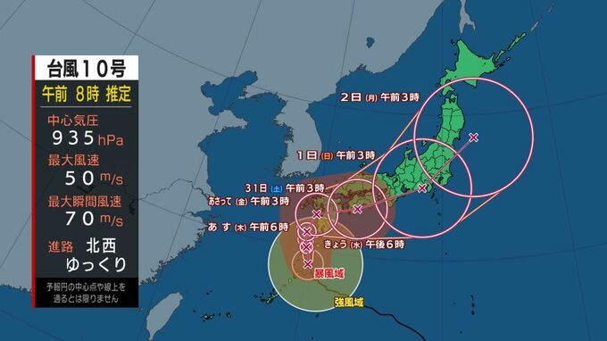 「台風10号」当初の予想より東寄りへ急カーブ 九州直撃のあと、中四国・近畿・東海・関東を直撃する可能性 鹿児島に「台風特別警報」発表の可能性 数十年に一度程度のレベルの強さ「伊勢湾台風」クラスか 山陰放送 2024年8月28日(水) 07:57 国内 気象庁HPより 気象庁HPより