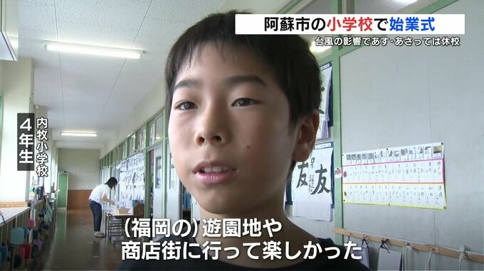 なお、阿蘇市の小中学校では、台風10号の影響であす29日(木)・あさって30日(金)は休校することが決まりました。