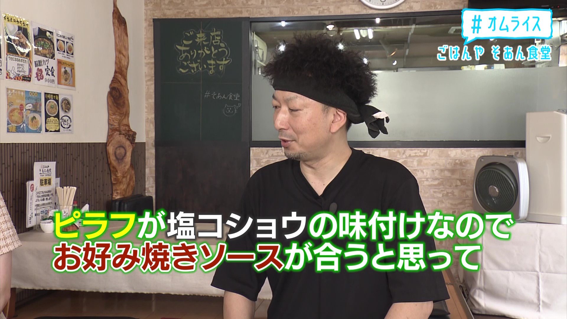 「中に入ってるピラフ自体が、ちょっと塩コショウの味付けなので、ケチャップよりもお好み焼きソースが合うんじゃないかなと思って」