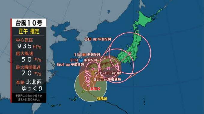 奄美地方と西日本では、一部の住家が倒壊するおそれもある猛烈な風が吹く所がある見込みです。