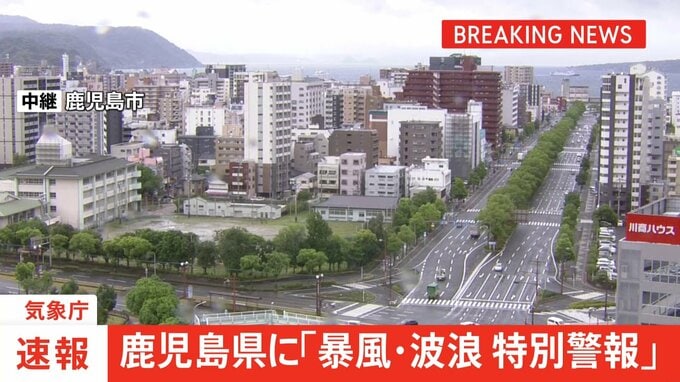 非常に強い台風10号について、気象庁は先ほど(午後1時)、鹿児島県に「台風の特別警報」を発表しました。▼暴風特別警報が奄美地方を除く鹿児島県全域、▼波浪特別警報は奄美地方を除く鹿児島県の沿岸地域に発表…