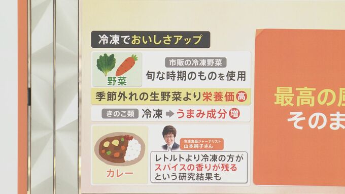 さらには、「カレー」も冷凍におすすめだそうです。冷凍食品ジャーナリストの山本純子さんによると「レトルトより冷凍の方がスパイスの香りが残るという研究結果も出ている」と述べています。