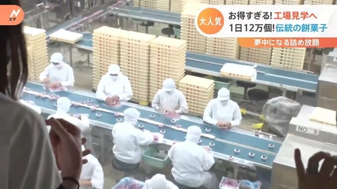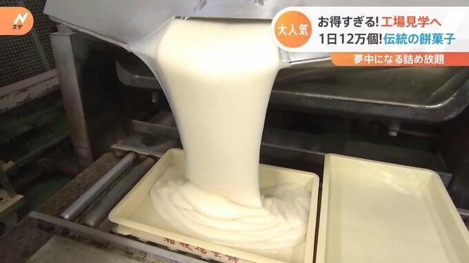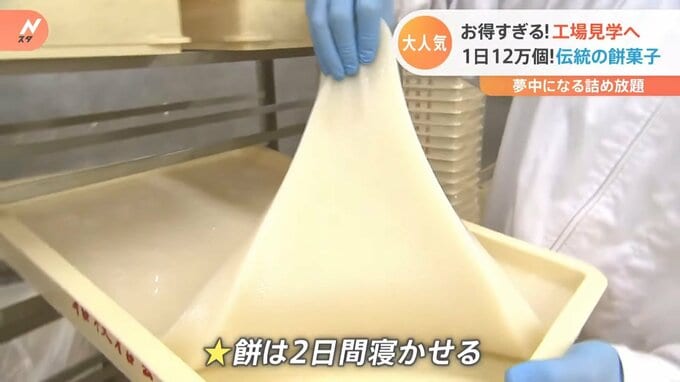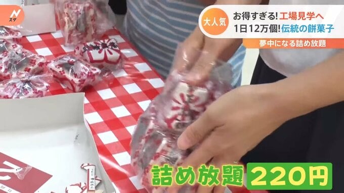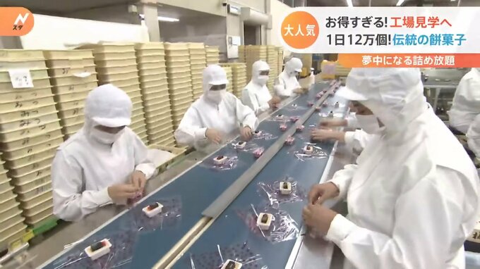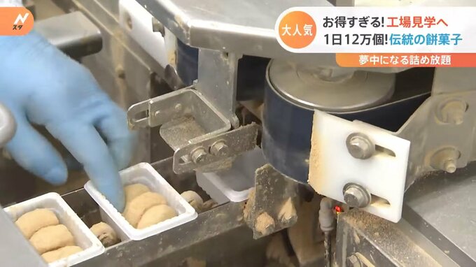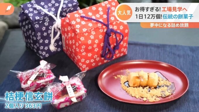 ■1日12万個!伝統の餅菓子「桔梗信玄餅」夢中になる詰め放題