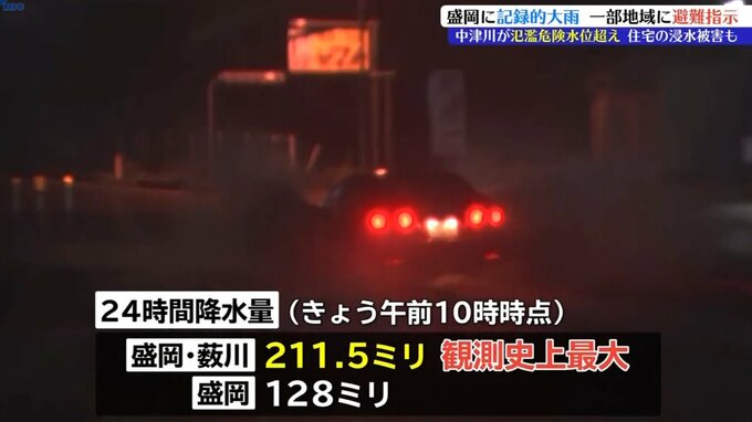 28日午前10時までの24時間降水量は、盛岡市薮川で211.5ミリと観測史上最大を記録し、盛岡でも128ミリを観測し、盛岡に記録的短時間大雨情報と内陸に線状降水帯発生情報が相次いで発表されました。