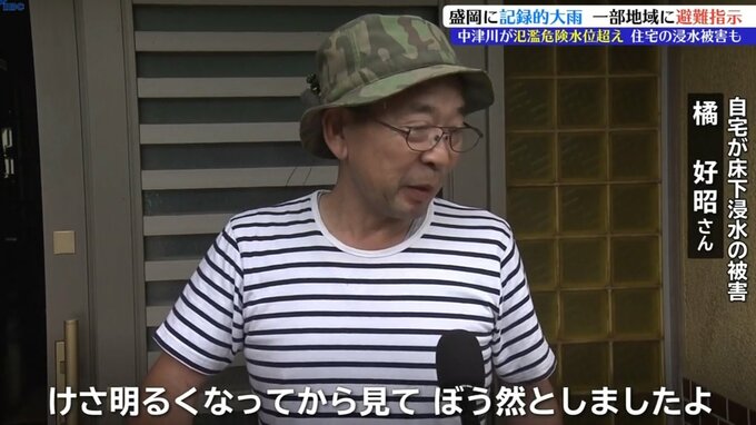 観測史上最大の雨を記録した盛岡市薮川では、午前中から自宅が床下浸水の被害に遭った男性が、慣れない泥出し作業に追われていました。