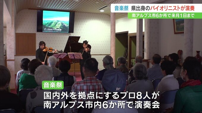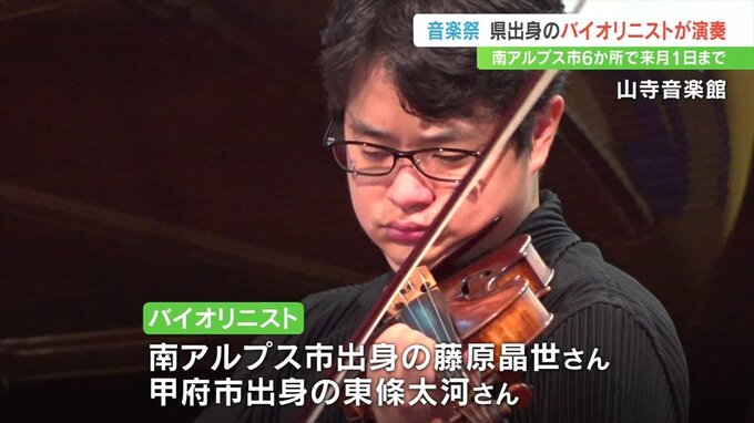 山梨県南アルプス市で9日間にわたる音楽祭が開かれ、28日は県内出身の2人のバイオリニストが演奏しました。