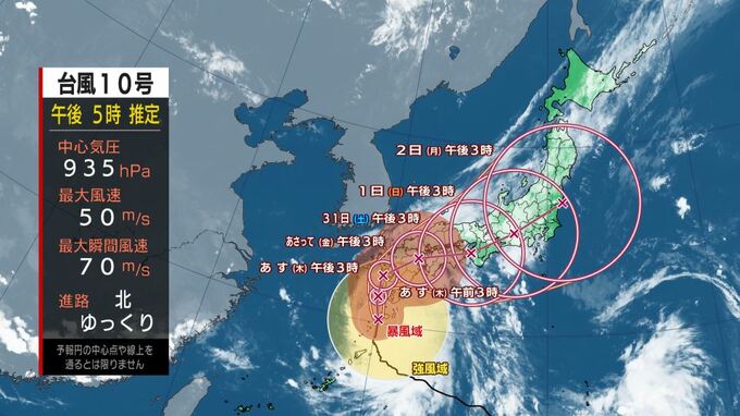 鹿児島県では暴風や高波、高潮に、九州南部では土砂災害や低い土地の浸水、河川の増水や氾濫に最大級の警戒をしてください。地元市町村が発令する避難情報に従って早め早めに身の安全を確保してください。
