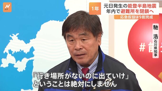 石川県の馳知事は能登半島地震で開設していた避難所を、原則、年内に閉鎖する方針を明らかにしました。石川県 馳浩 知事「『行き場所がないのに出ていけ』ということは、絶対にしません」現在も2700人余りが避難…