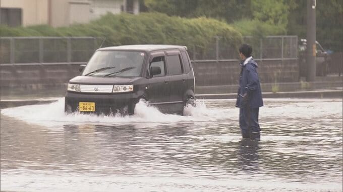 きのう(27日)の豊橋冠水。今回の台風の影響で、冠水した道路を通行する車の様子が各地で見られていますが、大雨が降る中での運転は、エンジンが止まる可能性があることを認識していなければなりません。