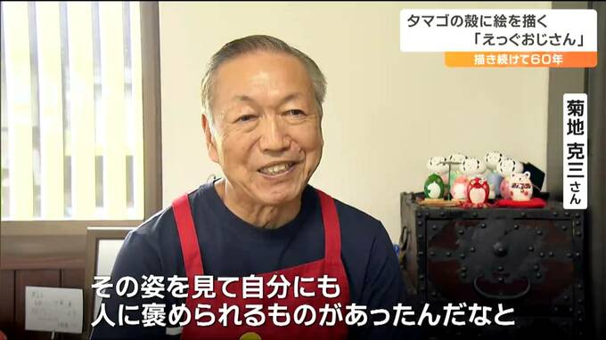 初めてタマゴの殻に絵を描いたのは中学2年生の時。雑誌に載っていた人形を自分なりに真似て作ったところ学校の作品展で金賞に選ばれました。